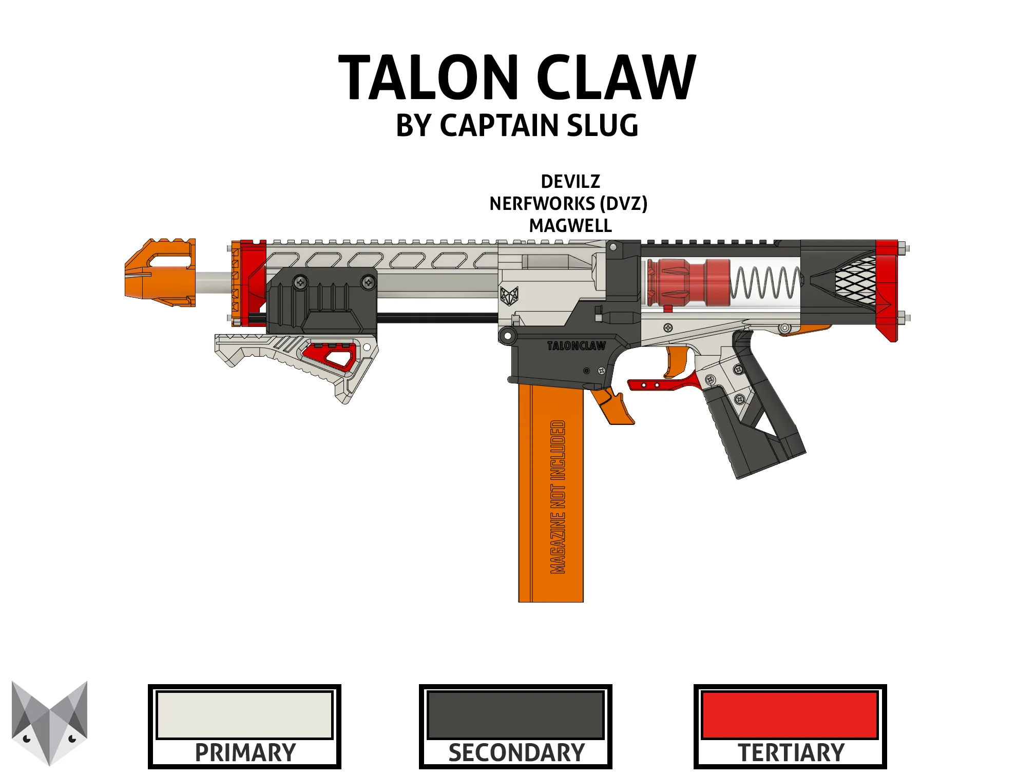 The Talon Claw is a Mag-Fed Pump-Action Homemade Blaster design released as an Open Source Non-Commercial